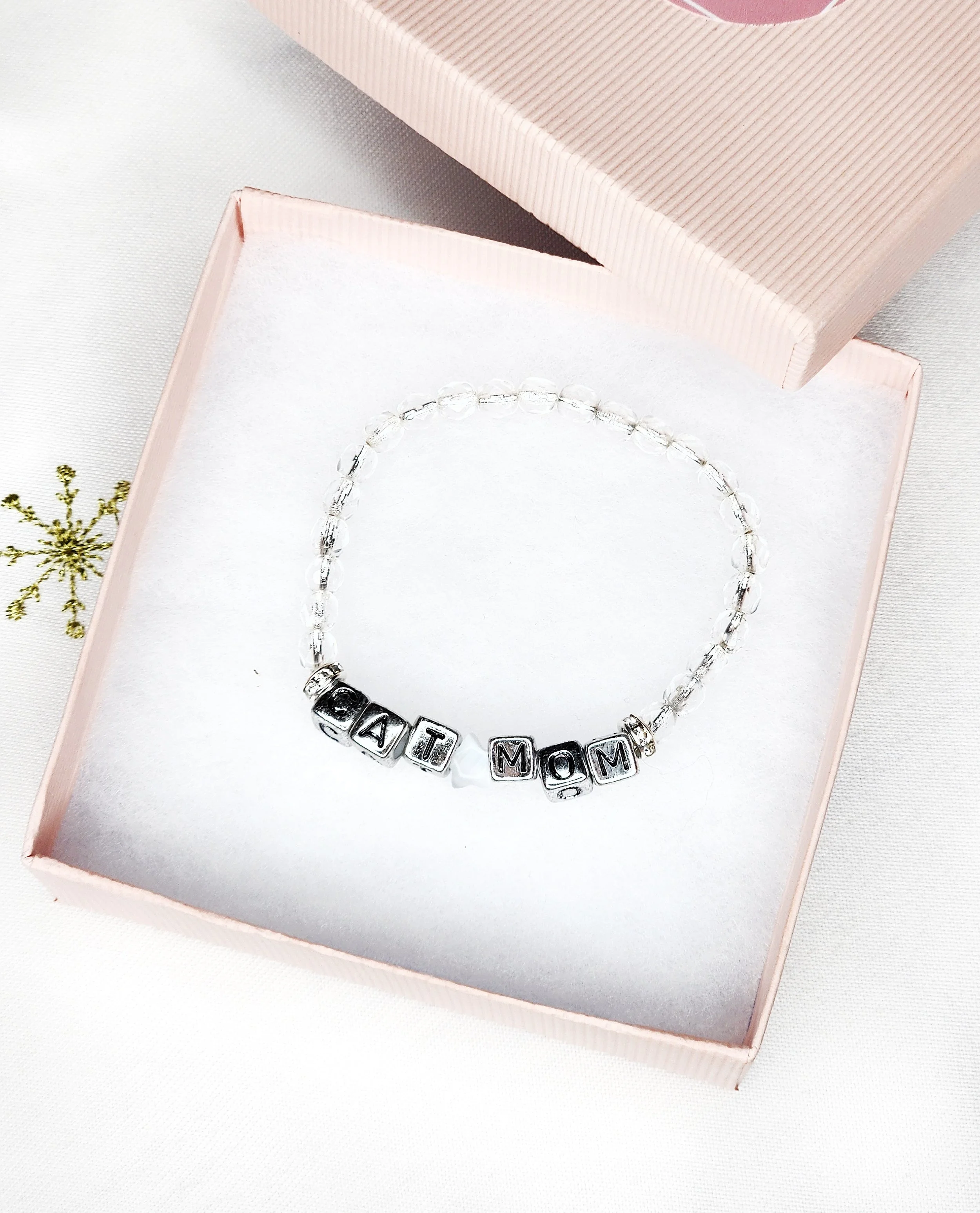 This bracelet is part of our ongoing " Forever Loved Collection" featured on our website where we offer animal-themed customized jewelry*. The collection was created in memory of our first rescue: a sassy, perfect tuxedo cat named Lucy, who brought many years of love, laughter, and patience into our lives. We have always wanted to create pieces that offer a sweet little memory to all furbabies.